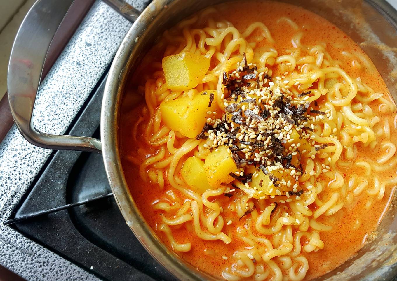 - Sprinkled the dried seaweed and sesame seeds (include on the Samyang package).