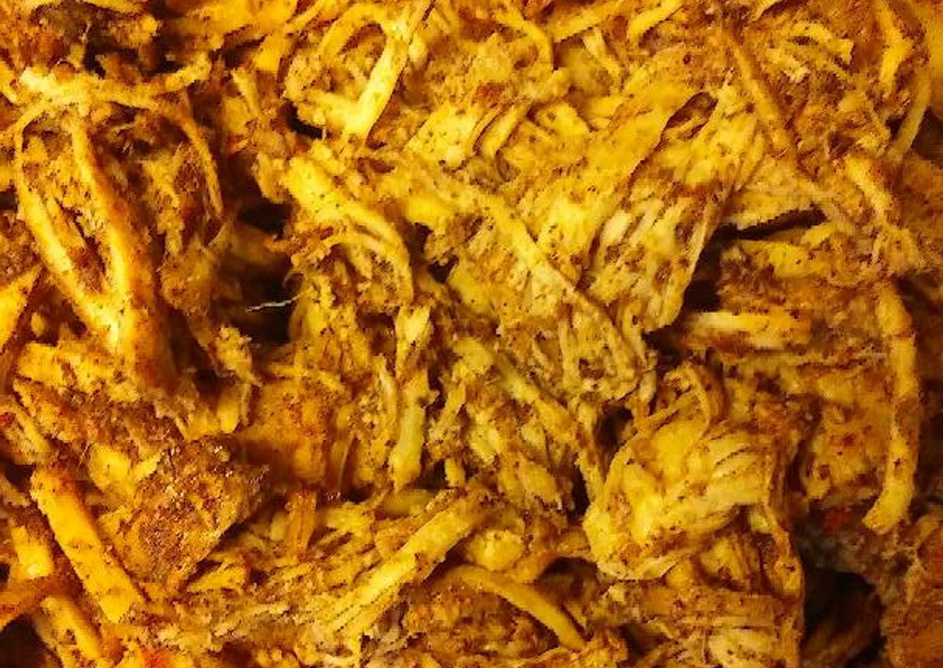 - Shred the chicken with 2 forks. Put into a broiler pan, pour 1/3 cup of remaining juice over the shredded chicken and place under the broiler for 5 min, stir and repeat untill chicken gets a little crispy on the edges.