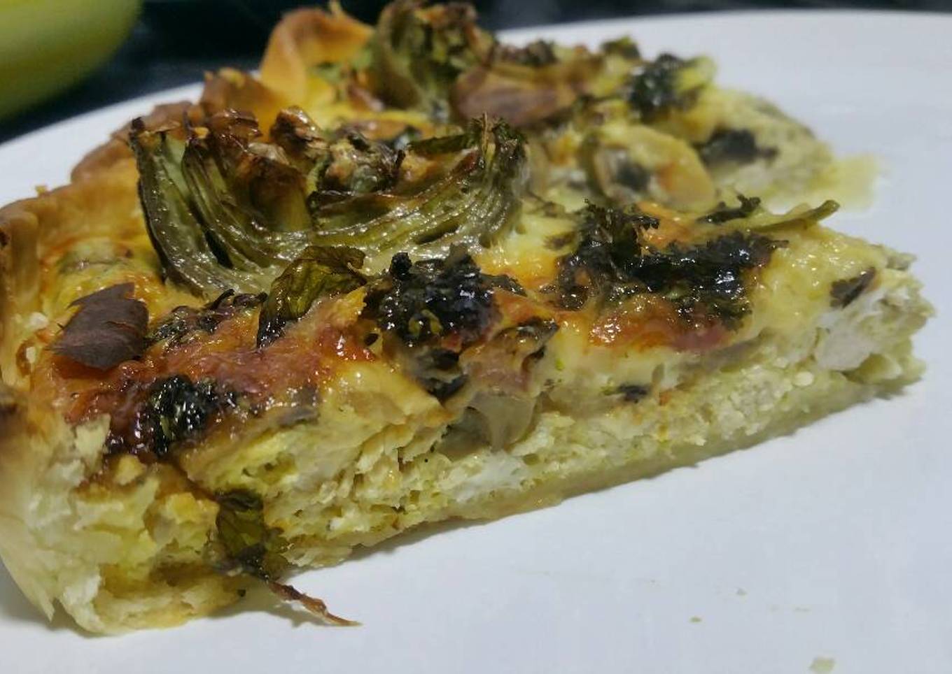 Chicken, mushroom and artichoke quiche